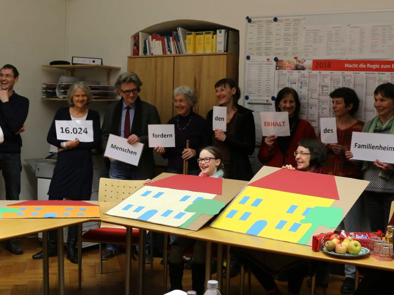 Am Donnerstag, den 15.03.2018, um 18:30 Uhr übergaben „Bewohner*innen des Familienheim-Quartiers zwischen den Wiehre-Bahnhöfen Freiburg“ stellvertetend 16.000 Unterschriften an Vertreter*innen der Fraktionen und Fraktionsgemeinschaften